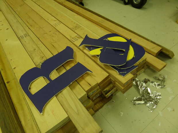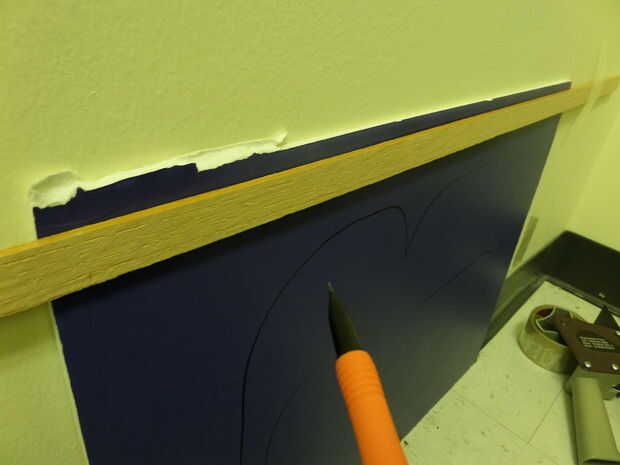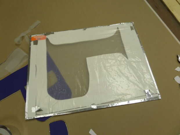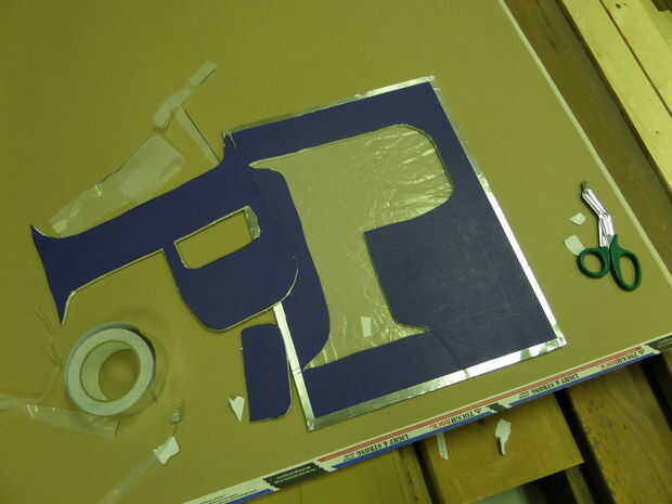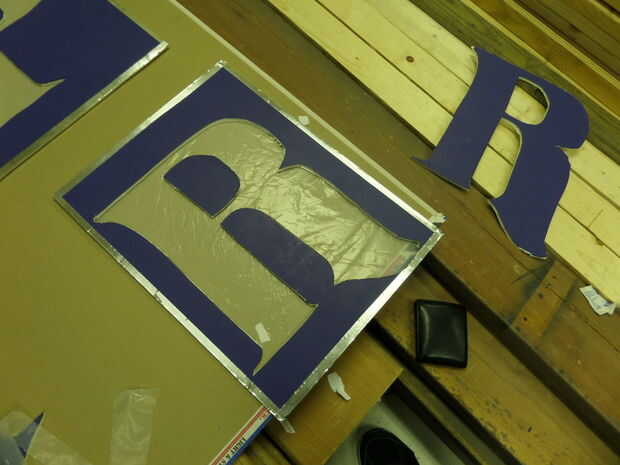 Luego, cortar las Letras con un cuchillo del exacto y el paño precortado firmemente contra el tablero de la espuma en la cara en el pegamento. Aviso que grabó él-que no funciona así. Pegamento caliente funciona mejor en este caso. Para las letras que tienen un centro como "P", tomar el centro de la "isla" y el pegamento sobre la lona.