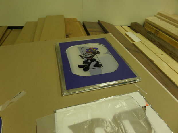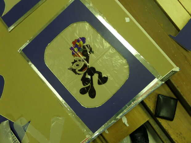Trace las palabras en los tableros de espuma a través de sharpie. Para la "O" en "Prom", puse Felix el gato en el centro por el tema para mi fiesta de graduación fue mascarada, y eso es como el gran Gatsby, que es de los violentos años 20, y Félix el gato era popular durante ese tiempo. Mi amigo de la artista fue capaz de ayudarme le dibuje hacia fuera con una máscara y con la ayuda de mi equipo, de color y le imprimen sobre un 8.5 x 11 papel para trazar en la lona.