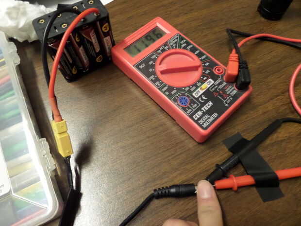 Después de preparar a la toma de corriente, entonces encontrar una fuente de 12 voltios - ya sea a través de la pared o a través de baterías, dependiendo de si desea que el proyecto para ser portátil o no. Usé una batería de 12 voltios que fue dejada sobre el proyecto de avión Solar. Tenía un conector XT60 así que convenientemente había enchufado en el conector coaxial.