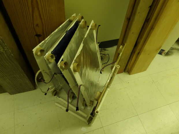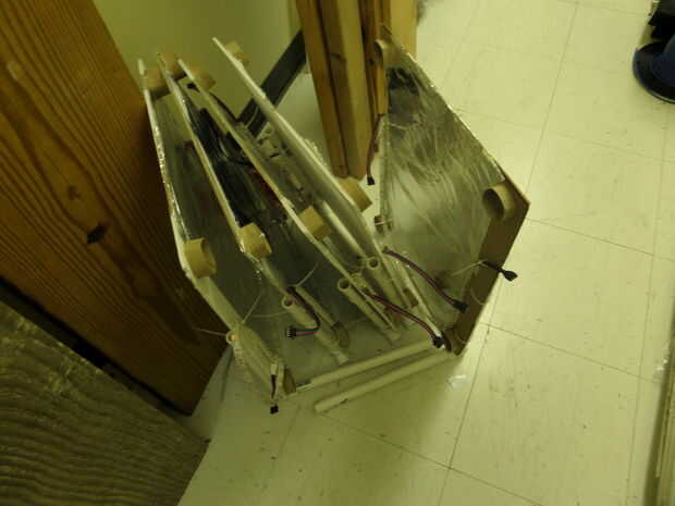 Ahora antes de zip atar juntos los dos tableros, Monte los tableros traseros a los tubos de PVC.