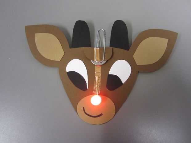Él tiene una nariz muy brillante, impulsada por la ciencia! Hacer su propio Reno de nariz LED rojo de papel y cinta conductor de Gadgets de perro marrón.