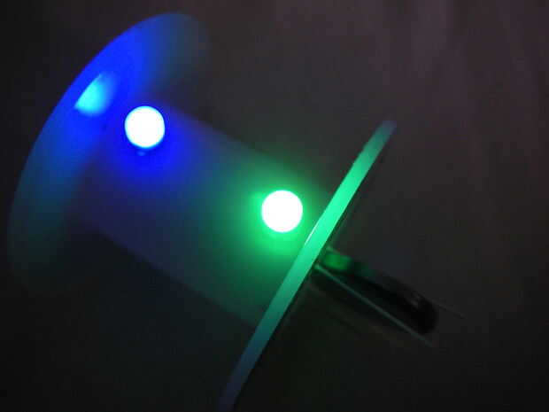 Esta pieza es una lámpara sensible al movimiento. Concebido como una escultura mínima tensegridad, la lámpara cambia su configuración de colores en respuesta a la orientación y movimientos de toda la estructura.En otras palabras, dependiendo de su or