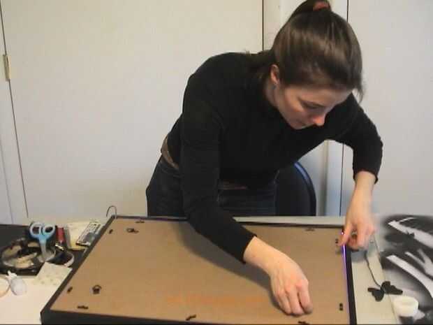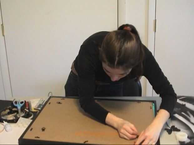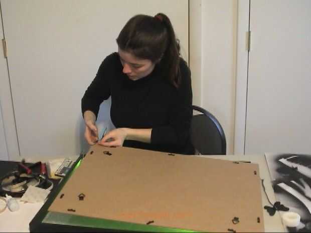 después de las vacaciones, terminamos con un excedente de sin usar shadowbox marcos de Ikea. Así que, decidí hacer un regalo de cumpleaños para mi hermano de una de ellas.La idea era hacer un batería, función de iluminación con logo y nombre de la ba