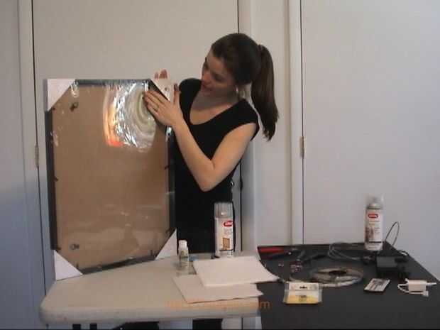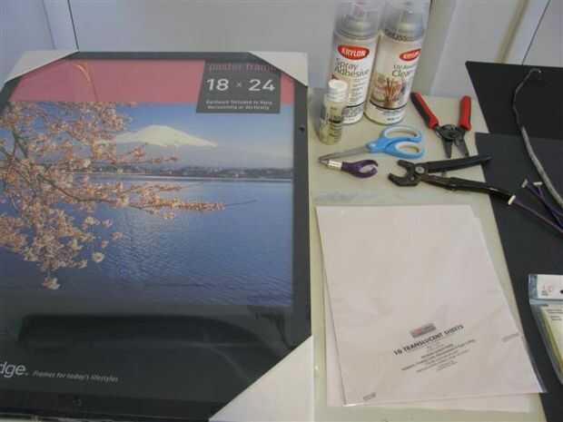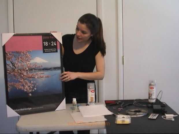 ~ ~Marco de cartel- utilicé un 18 x 24" marco del cartel estudio hecho por Nielsen Bainbridge (conseguido en tienda de artesanía)-la razón me ha gustado mucho este marco era debido su: profundidad (1 1/4") y la parte posterior ajustable (que podría tener sentado al ras contra el vidrio o hacia la parte posterior del marco. Esto permitió espacio para la tira de LED flexible mientras todavía, mira profesional). Podría también utilizar un pequeño marco de coleccionables - o incluso hacer tu propio si quieres!