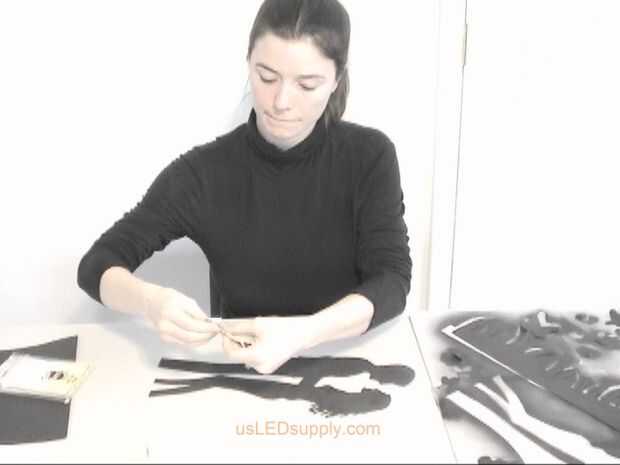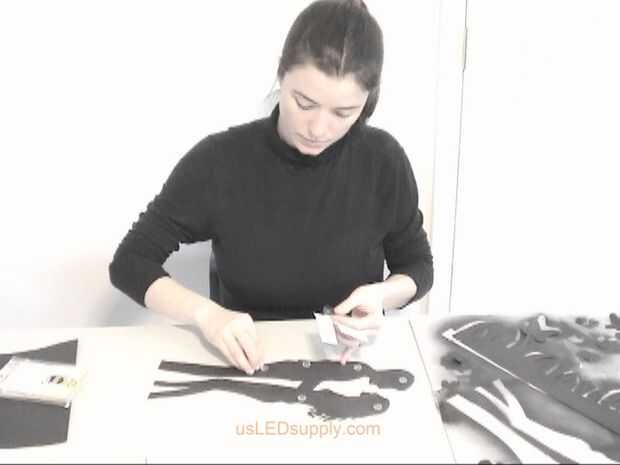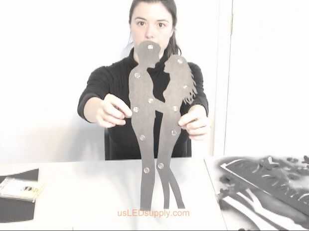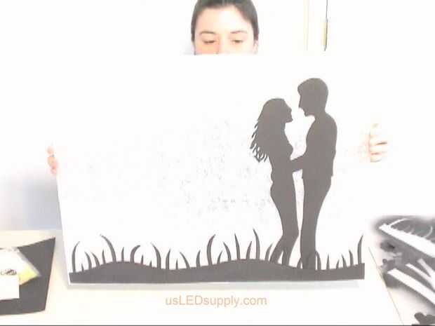 Poner el 3D pop up puntos de pegamento de alivio en la espalda de la pareja y los trozos de hierba (usted necesitará cortar a menor tamaño de la hierba). Usted no quiere poner en la parte inferior 1-2" de las siluetas (de modo que el vidrio puede todavía sentarse a ras con el marco).