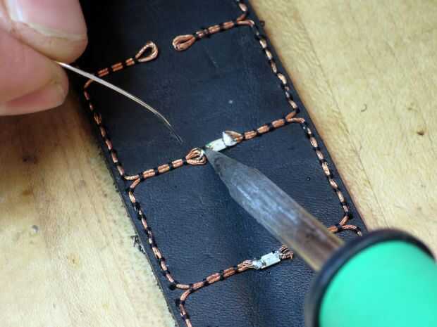 Una vez seleccionadas sus LEDS, coge sus herramientas de soldaduras. Colocar los LED ' s que desee, para que se conecte a su hilo conductor y lejos de la soldadura! Asegúrese de que te acuerdas de qué lado es que la polaridad cuando poniendo hacia fuera y los de soldadura.