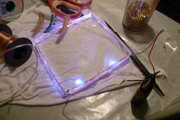 El resto del base del sostenedor de la servilleta se vierte cuando los LEDS están conectados.