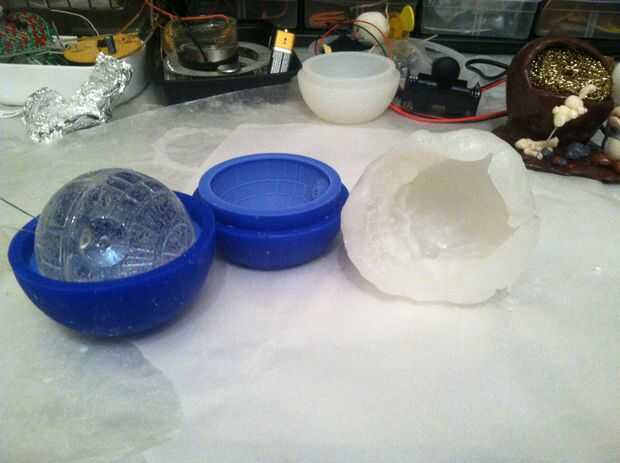 Para la estrella de la muerte, he comprado el molde de bandeja de hielo del silicón de mi visita a planetas prohibidos. Lo he visto en Amazon y Geek de pensar así. Bandejas de plástico no deben utilizarse como la resina se calienta y puede deformar o fundirlo.