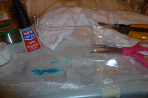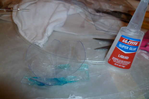 4. corte tiras de plástico para hacer un esqueleto para el chapoteo del agua alrededor del objeto (ex. Estrella de la muerte). Montar las tiras en un patrón semicircular y pegamento junto con pegamento.