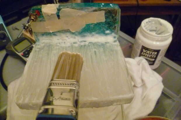 6. añadir efectos de agua en las tiras de plástico y alrededor del objeto con un cepillo. También de utilizar los efectos de agua escénica de bosque después de que los efectos de agua Vallejo seco alrededor de la estrella de la muerte porque es mucho más grueso en consistencia.