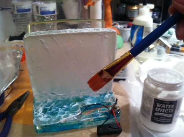 1. Aplique una capa de Vallejo agua efectos en ambas paredes. También aplique una capa de los efectos del agua sobre la base del sostenedor de la servilleta.