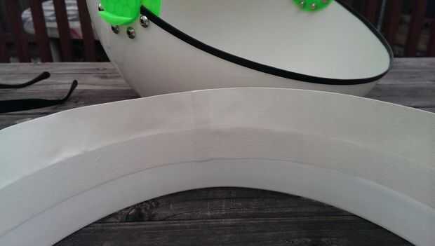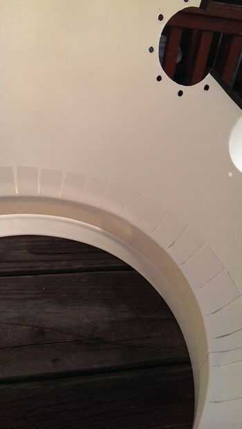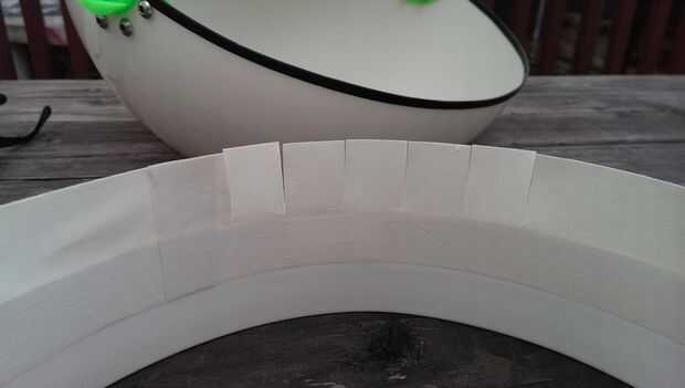 Ahora pegue el cuello con cinta adhesiva blanca, ni el método de fijación de su elección. La cinta de color que elija puede utilizarse para mezclar o contrastan con los colores del casco solicitadas. Corte una tira larga de cinta y empezar a pegarse en el interior del cuello, por lo que sobresale de la mitad de la anchura sobre el borde de corte. Corte la parte sobresaliente de la cinta en pestañas por lo que cabe a la superficie interna del casco. Montar todas las fichas de la cinta a través de la abertura del cuello, y luego iniciar presionando en el interior del casco. Ahora está realmente empezando a tomar forma! Este es un buen punto para probar el casco y admirar lo bien viene a lo largo de!