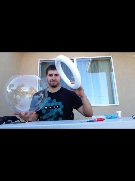 Use la corona de espuma blanca 12" y coincidirlo mejor posible en el agujero central. Usando un pegamento pistola de pegamento el interior forro y el exterior de la guarnición para asegurar la corona de espuma en el casco. Deje que se seque.