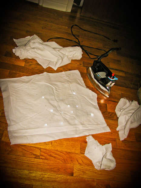 Yo estaba parado detrás y tomó la primera foto. Miró, reflexionó, luego añadió una plancha a la foto. El hierro no es actualmente encendido. Este no es procedimiento de almacenamiento de hierro adecuada. Había planchado por un tiempo. No soy una pobre planchadora, esta tela no quiero ser suave. Almidón del aerosol alguna tela más estaría bien. Tenga especial cuidado con el pliegue.