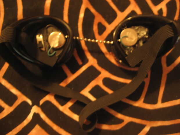 hice éstos antes de pensar en documentar el proceso. Fue un montón de diversión!La base es un conjunto de gafas de seguridad de laboratorio chem, envuelto en cuero de disfraz de vaquero del año pasado. Casi todo es pegado en caliente en. Me encanta e