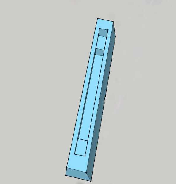 Hij moet aan de onderkant ruimte voor een condujo en batería hebben. Daar boven op moet het plexiglazen plaatje recht gehouden worden. Het simpelst om dit te maken es om een rechthoek (met een bredere en wijdere omvang dan je gewenste grootte voor het plexiglas) te maken en deze uit te hollen. IK básica hiervoor het 3D Sketchup programma, omdat este talón simpel es.
