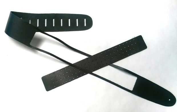 Para este proyecto, quería 2"(51mm) ancho de cuero. Usé un barato correa de guitarra como el cuero de la fuente. Es bastante amplia y lo suficientemente largo como para el trabajo. Utilice el lado brillante de la piel por el exterior del collar. El vinilo adhesivo se fije mejor, y se ve muy bien.