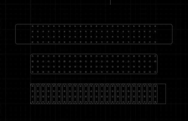 Si tienes acceso a un cortador láser, como un epílogo, se trata de la manera más fácil de ir. Utilice el archivo choker.dxf adjunto para hacer los cortes en un cortador láser. La. Fichero DXF tiene la trayectoria de corte de cuero en la parte superior, la trayectoria de corte de vinilo (usada más adelante) en el medio y una ilustración de donde obtener une placas de circuito impreso en la parte inferior. Suponiendo que usted quiere hacer una exactamente del mismo tamaño (15 2/3" de largo) como lo hice, puede utilizar la ruta de corte de cuero en la parte superior para cortar el contorno y la placa de circuito los agujeros de montaje. Si necesita una longitud de cuello diferentes, necesitará modificar el archivo correctamente.