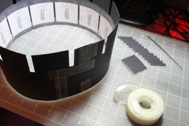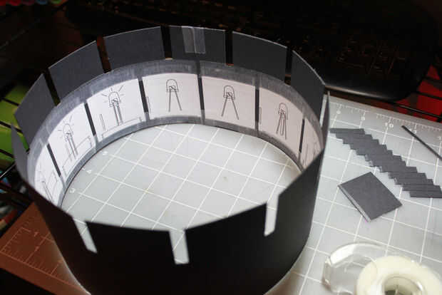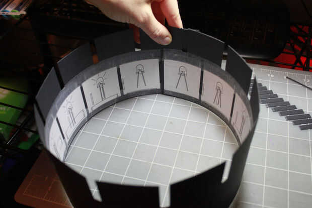 completan su hoja plana de papel por lo que es redondo. Cinta adhesiva para que la última imagen y la primera imagen tienen la misma cantidad de espacio entre ellos como todas las otras imágenes.