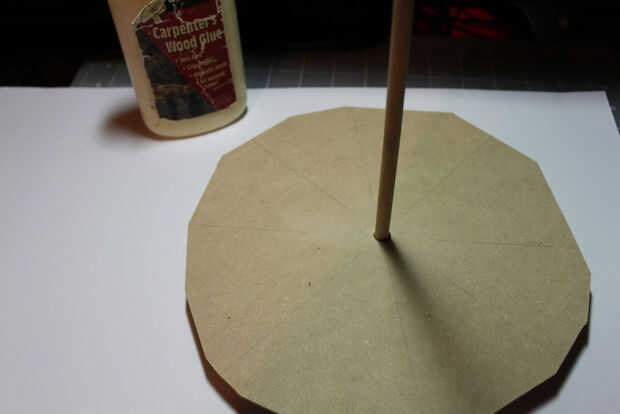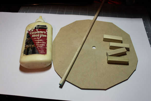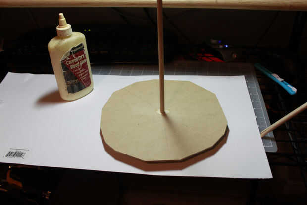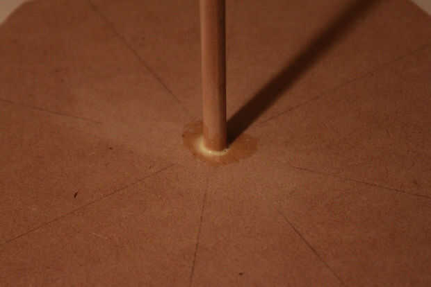 Con el corte del agujero, tuve una clavija de madera que quepa muy bien. Apropiación de algunos bloques de repuesto tenía por ahí a actuar como bandas, procedí a pegar el pasador en el agujero. Cuando estaba casi seco, fliped sobre y pegado a la parte superior, dejando que la caída de la barra libremente así que secar lo mas recto posible.