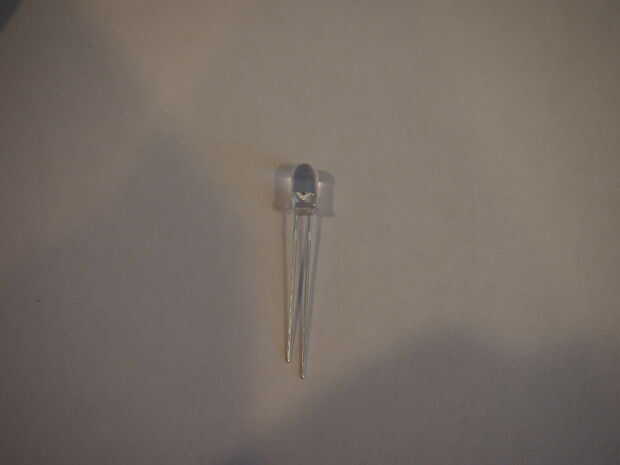 En primer lugar, inserte la batería entre las dos patas del LED. CUIDADO! Es importante que la pierna esté en contacto con el terminal positivo/negativo de la batería. La pierna más larga, que es el ánodo, deben estar tocando terminal positivo (+) de la batería, mientras que la pierna más corta, que es el cátodo, debe estar tocando el terminal negativo (-) de la batería. Se puede decir que haya conectado bien el LED ilumina.