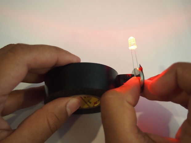 Materiales:2 x Tarjeta de papel (Manila) se desliza1 x 2032 batería de reloj1 x 10mm difusa LED1 x imán de tierras raras (neodimio)Cinta (eléctrica o cinta aislante)Paso 1: Hacer que el LED enciende para arribaTocar los extremos del LED a la batería