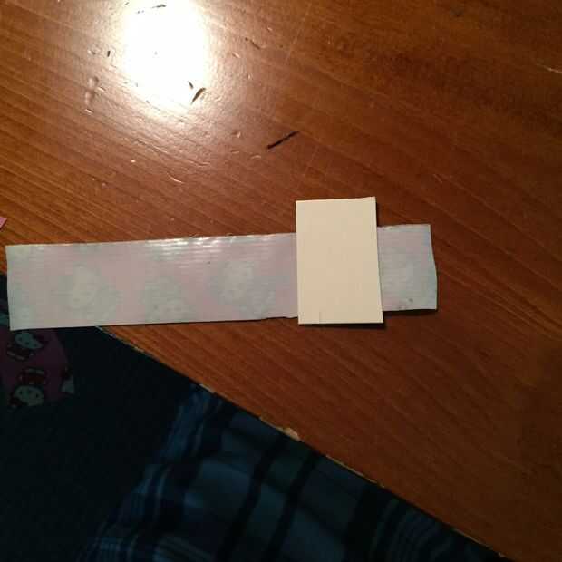 Cortar una tira larga de 5-7 pulgadas de cinta. Pegar una pestaña de Manila en la cinta