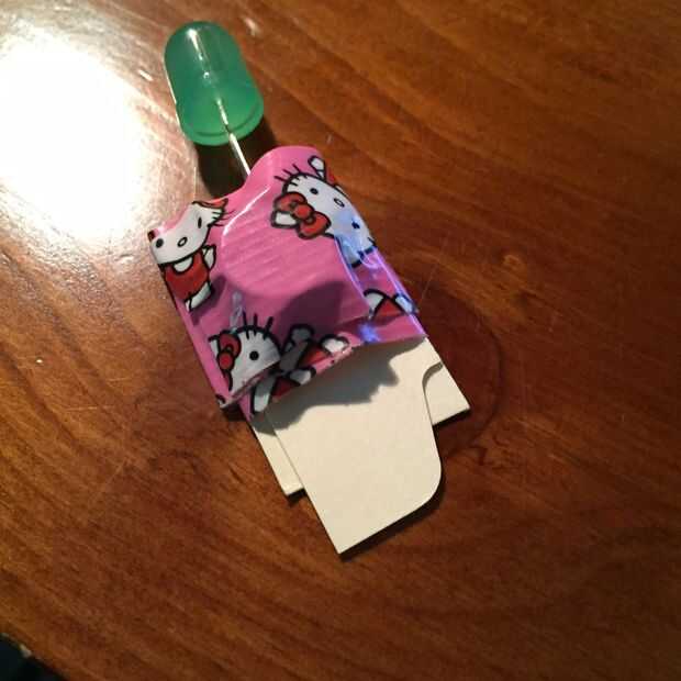 Deslice la segunda ficha de Manila entre la batería y el extremo más largo del LED que puede romper el circuito cuando está resbalada hacia adentro y hacia afuera.