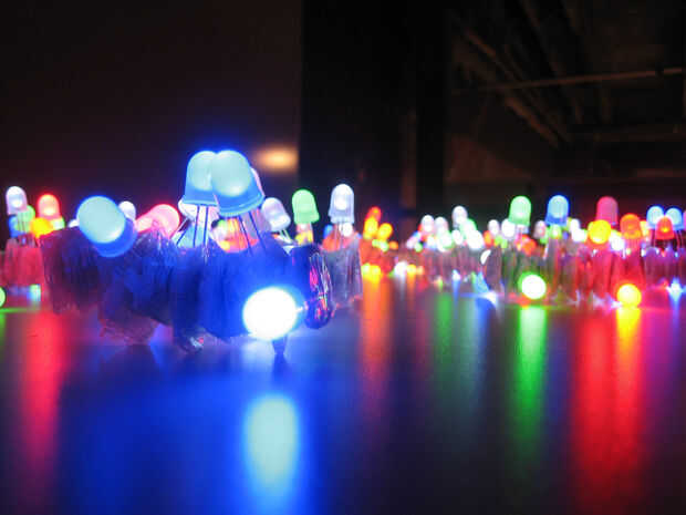 desarrollado por Graffiti Research Lab una división del Eyebeam R & D OpenLab, LED Throwies son una forma económica de añadir color a cualquier superficie ferromagnética en su vecindario. Un fotorresistencias consiste en una batería de litio, un 10mm difusa LED y un imán de tierras raras con cinta juntos. Tiro alto y en cantidad para impresionar a sus amigos y funcionarios de la ciudad.