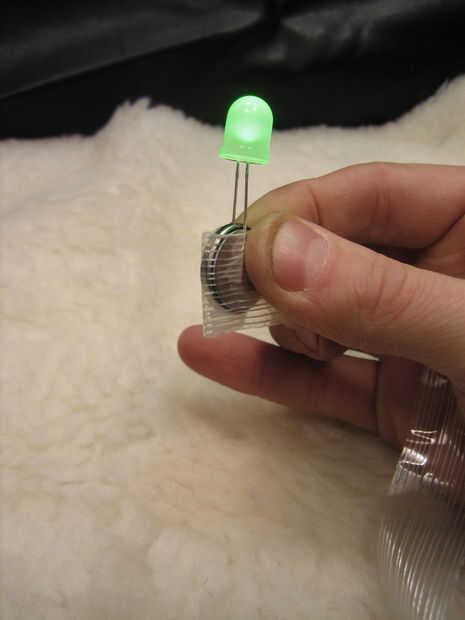 Materiales:2 x Tarjeta de papel (Manila) se desliza1 x 2032 batería de reloj1 x 10mm difusa LED1 x imán de tierras raras (neodimio)Cinta (eléctrica o cinta aislante)Paso 1: Hacer que el LED enciende para arribaTocar los extremos del LED a la batería