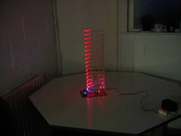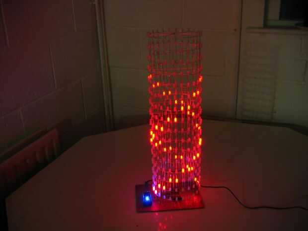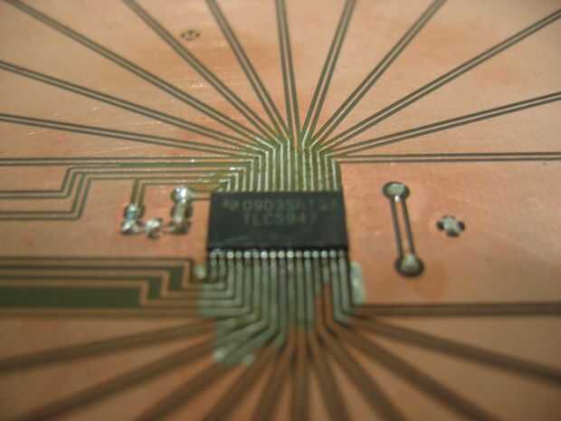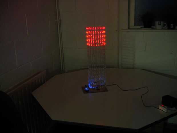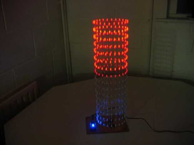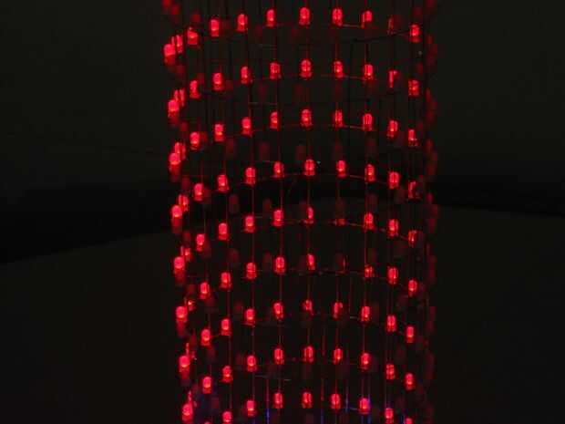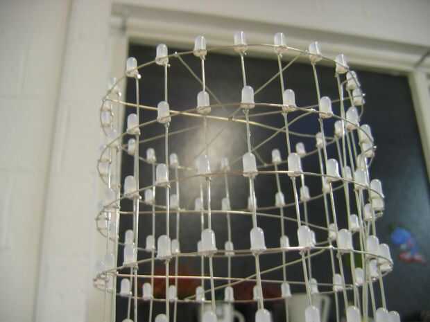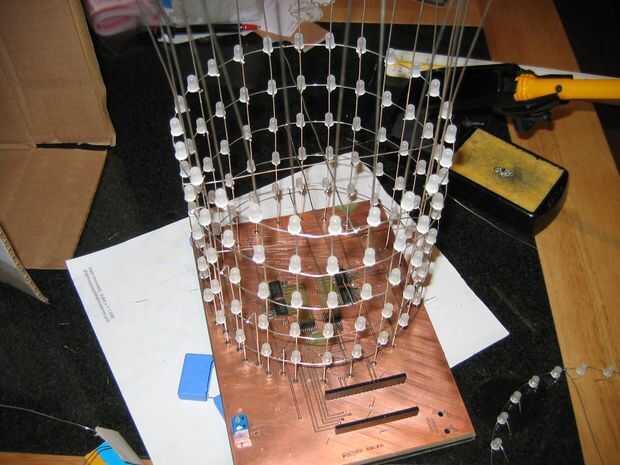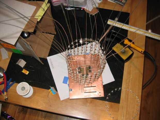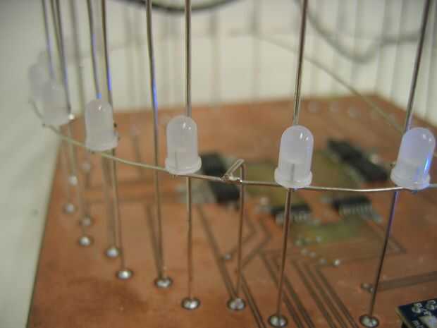 Las capas están formadas por arreglo de 24 LEDs en forma de círculo. Los ánodos de cada LED en una capa se sueldan con estaño alambre revestido 0,7 mm que ayuda a formar y mantener la forma de círculo.