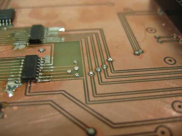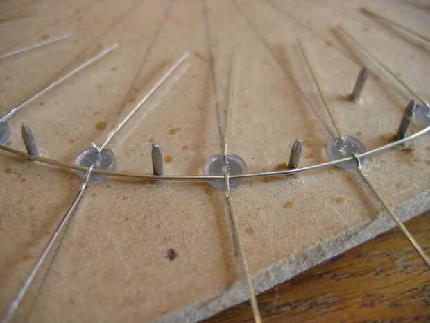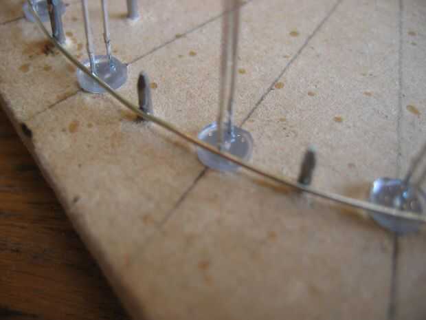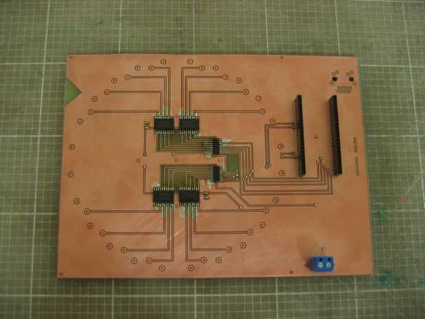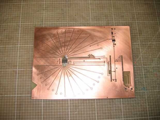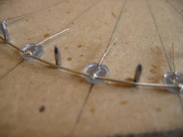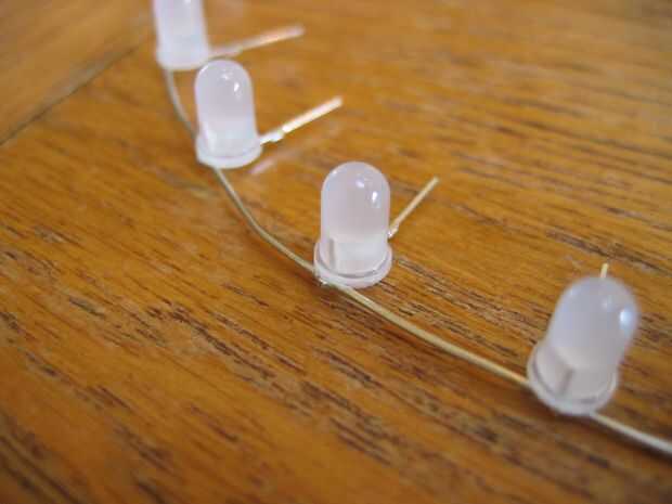 Con 16 de estas capas luego apilados para formar la forma de tubo terminado. Los cátodos de una columna de LEDs son soldados con alambre de 0,9 mm.