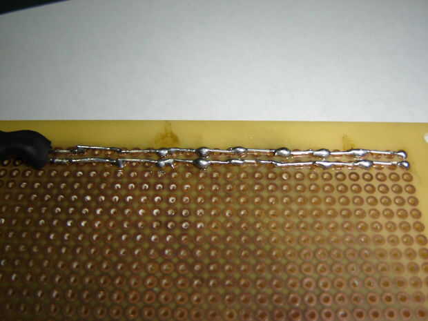 Les de la soldadura en paralelo. Todas las conexiones positivo (cable largo) son soldadas a juntos y todas las conexiones negativas (menos plomo) se sueldan juntos.