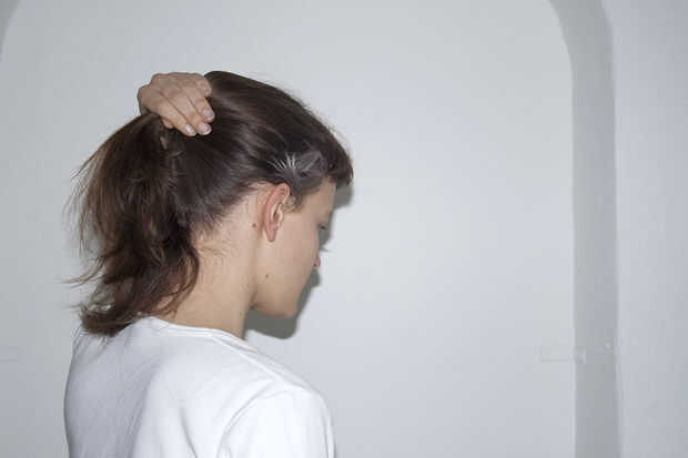 .. .todo alrededor y agarrar su cabello en cola de caballo baja Inicio posición.
