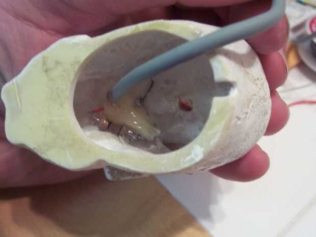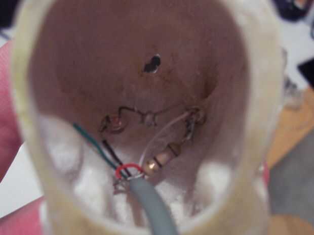 Pasar los LEDs la parte posterior de los orificios hechos para los ojos.