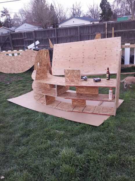 Primero cortamos la curva de la parte superior y luego la curva de la parte superior piezas menos 6 pulgadas. Para obtener una curva limpia agradable nos tenía un pedazo grande de plástico de 1/4, 6 pulgadas de ancho, en el extremo para que la curva y trace una curva limpia agradable. Cortamos la curva de los lados al que luego nos dio la curva y la inclinación de la nave. Compensamos los soportes mediados para representar tablas de un buque cuando cubierto e iluminado.