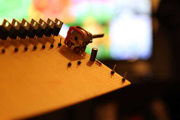 Y no es necesario, pero hecho aquí, un simple filtro de paso bajo pasivo con un resistor del ohmio 1 k y un condensador de 1μF.