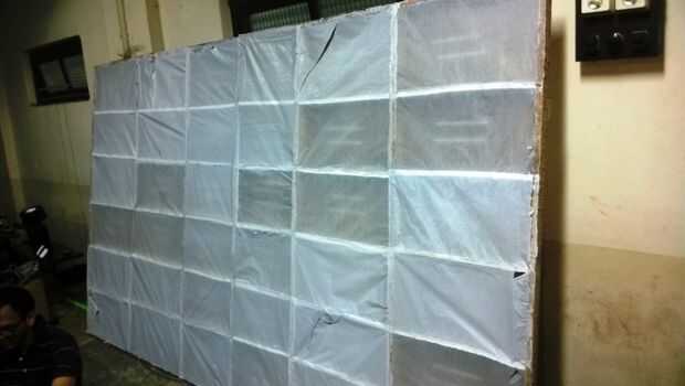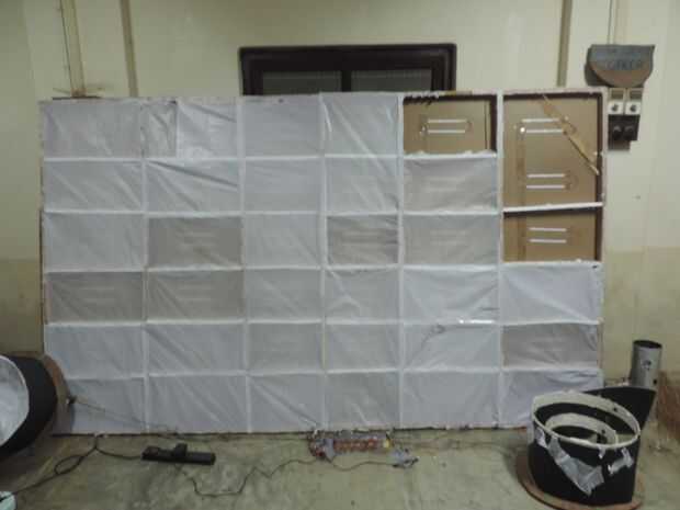 La pared se hizo en tres partes: el ecualizador, los woofers y la matriz del bulbo.