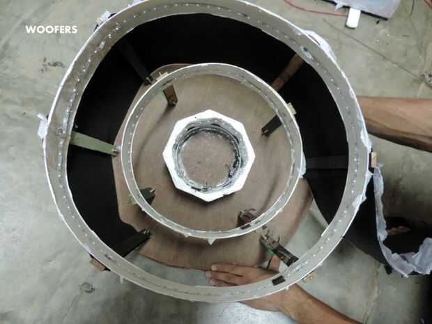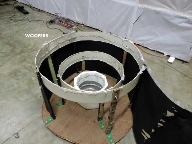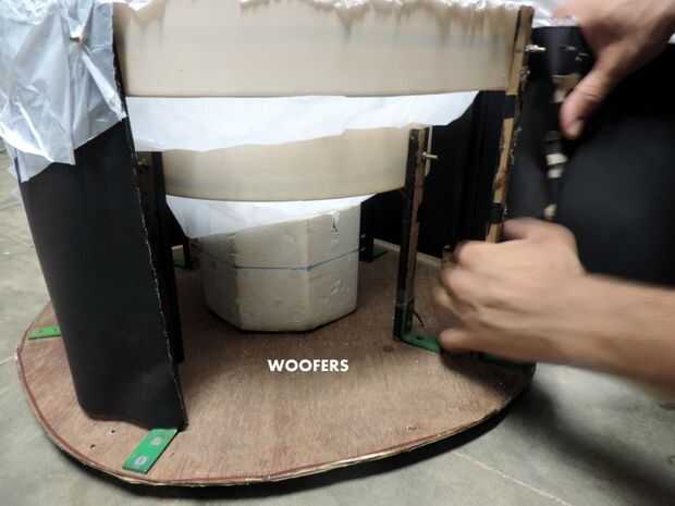 Los woofers son básicamente mostrar los ritmos en la música. La han 4 niveles de LED tiras pegado en círculos concéntricos, con tablones de madera para soporte, una carcasa plástico y base de madera contrachapada, más tarde cubierta por un papel de carta negra y papel de mantequilla para la difusión.