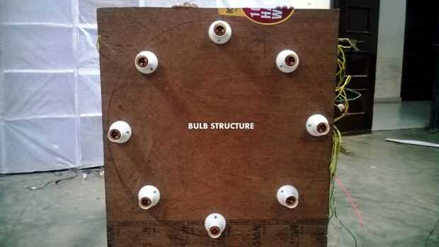 La ecualización fue 350 cm por 250 cm totalmente dividido en 6 partes verticalmente tal que cada uno de ellos puede exhibir la amplitud 6 diferentes componentes de frecuencia de la música está siendo reproducida. El marco era madera con un fondo de madera con tiras de LED pegadas en ellos en diferentes niveles. Luego se cubre con papel de mantequilla, con agujeros perforados en madera para tomar la conexión hacia fuera de la parte posterior.
