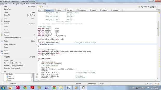 El firmware fue escrito en C embebido y luego programado para el MSP430 usando el emulador de Launchpad Studio código compositor.
