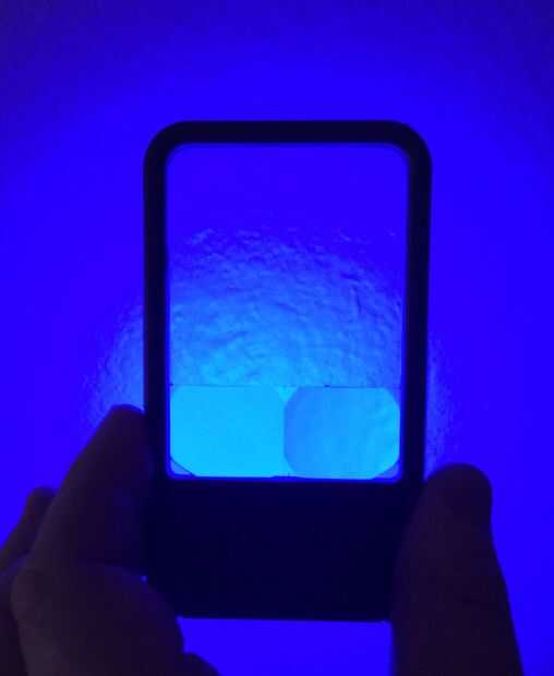 Una verdadera lámpara de woods es Ultravioleta y emite en 385-400 nm. Usar fluoresceína a la mancha para la patología corneal y la longitud de onda excitable óptimo es 450-500nm para que esta conversión fue perfecta porque los LEDs que tenía 485-500nm.