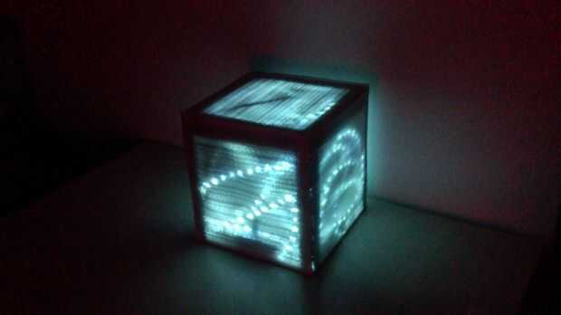 La idea era hacer un cubo de Led. Mi problema era que no quería soldar muchos Led entre sí, porque primero no es fácil hacer una buena estructura, perfectamente cuadrada, y luego porque creo que no es realmente hermoso ver a todos estos pines del Led