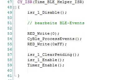 Esta es la rutina de servicio de interrupción que se encarga de las devoluciones de llamada de BLE. En el ejemplo esto es en el bucle sin fin-de-en el (principal)-función. Pero yo quería hacer algo más y manejar BLE sólo si es necesario.