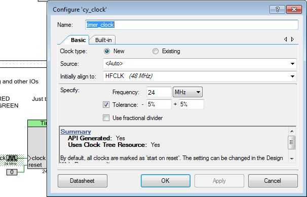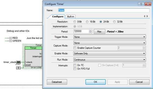 Para el Timer_clock elegí 24MHz en lugar de 48 MHz, debido a que los 48 MHz problemas de sincronización. Y sólo necesitamos este temporizador para una interrupción regular!