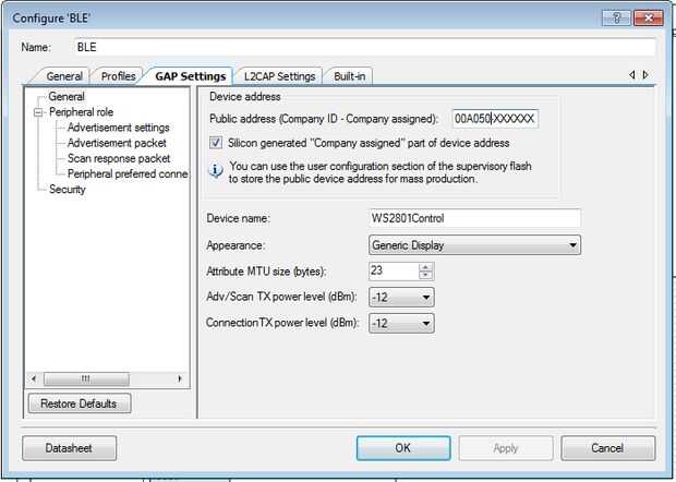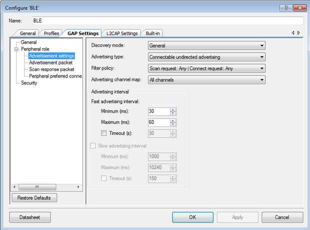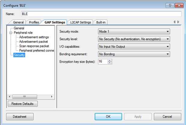 Paso 6: Configurar la BLE brecha-