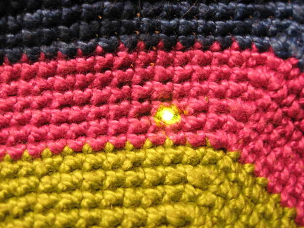 Que necesitaba mostrar a mis alumnos una manera simple de incorporar LEDs en un pedazo de tela, así que hice un tutu que enciende para arriba. Futuras versiones va a reaccionar al sonido, la luz o la aceleración. Pero para ahora, es simplemente activ