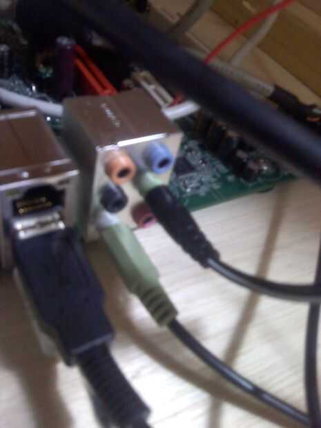 Enchufe en la computadora altavoces en el audio jack y enchufe en el conector macho de audio del circuito en donde normalmente se enchufa los altavoces.   Montar los LEDs y el interruptor.  Ahora enciende y poner algo de música en.