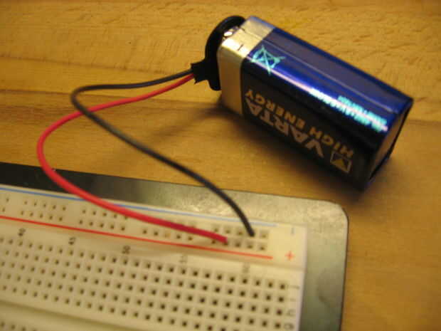 La soldadura de ambas resistencias al extremo positivo del clip de la batería.