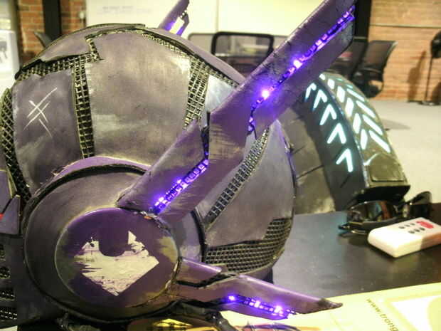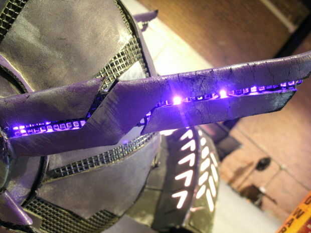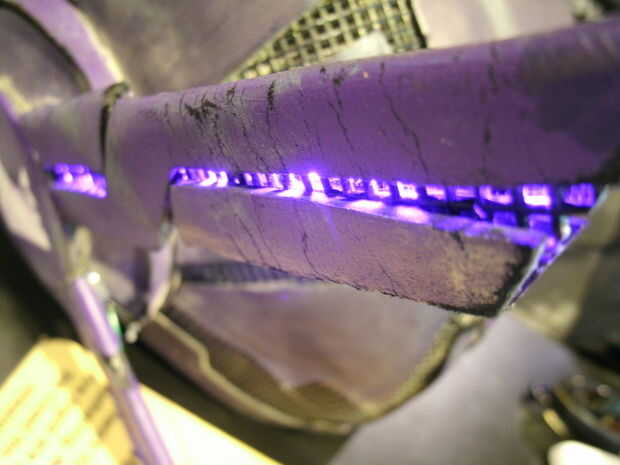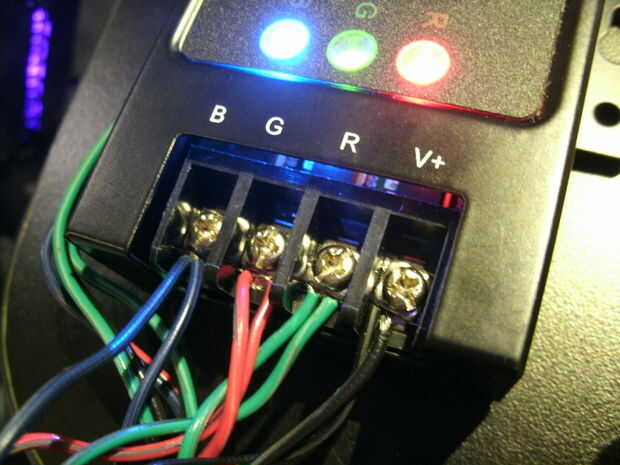 b) tomar los correspondientes cables rojo, verde y azul de las orejas y conectar a las correspondientes conexiones negativas en el regulador de color.
